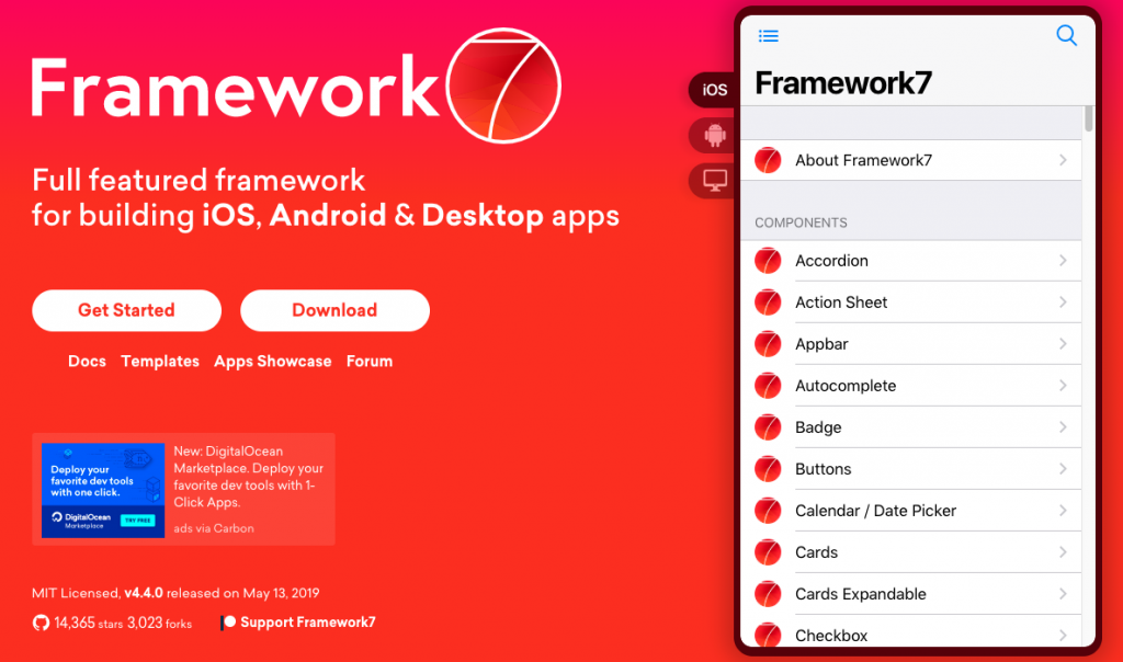 古い技術を捨てることなく新しい技術も取り入れているFramework7なので、将来性もあります。