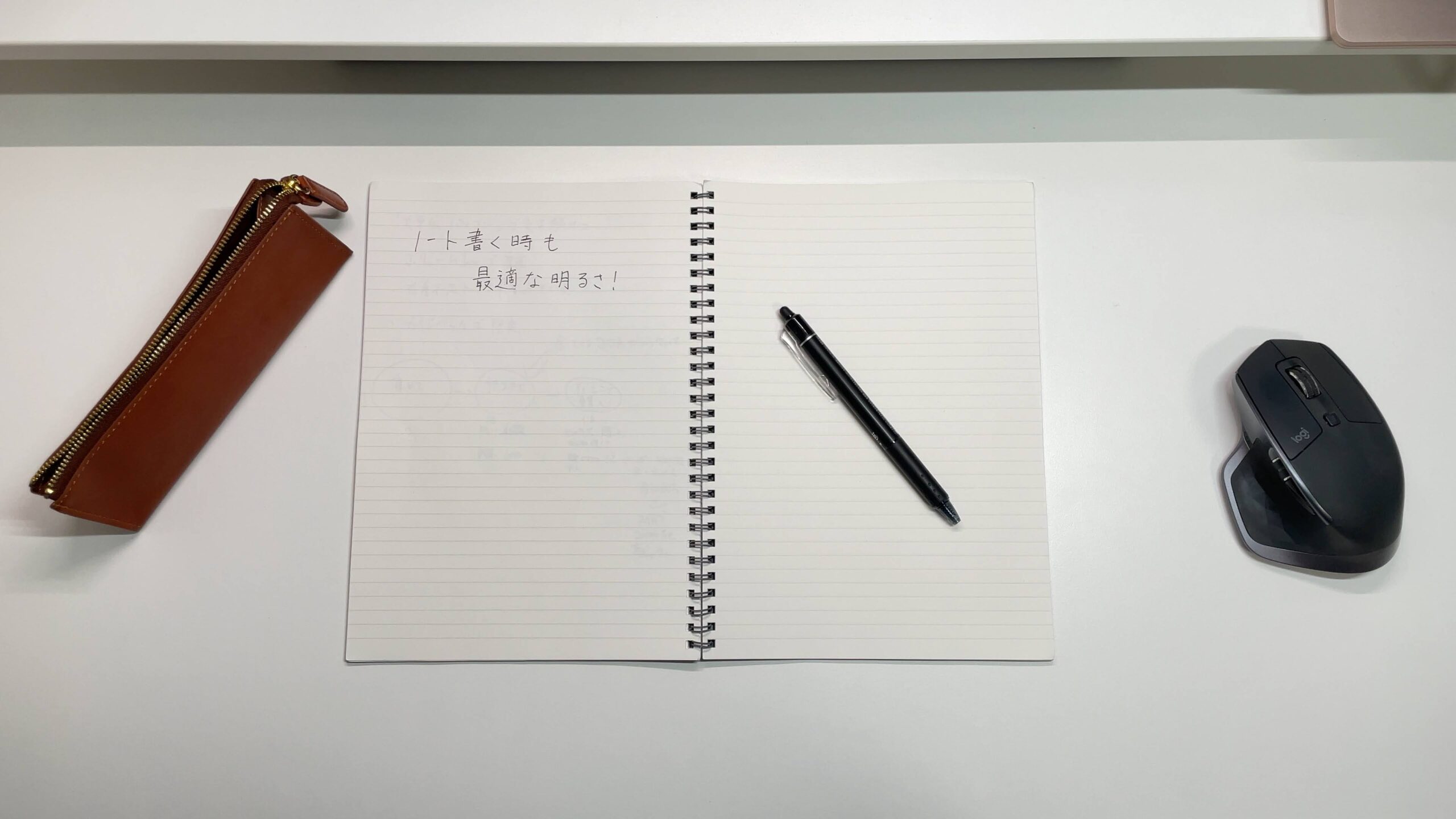 他にも思考をまとめるのにノートにメモ書きしている時もこの明るさはとても心地よいものでしたね。