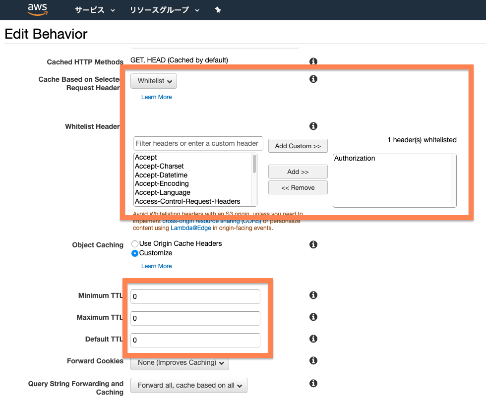 CloudFrontのBehaviorを以下のように設定しておきましょう。