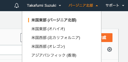 lambda@edgeを使うには、リージョンが 米国東部(バージニア北部)のみなのでリージョン移動します。