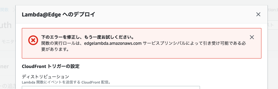 関数の実行ロールは、edgelambda.amazonaws.com サービスプリンシパルによって引き受け可能である必要があります。