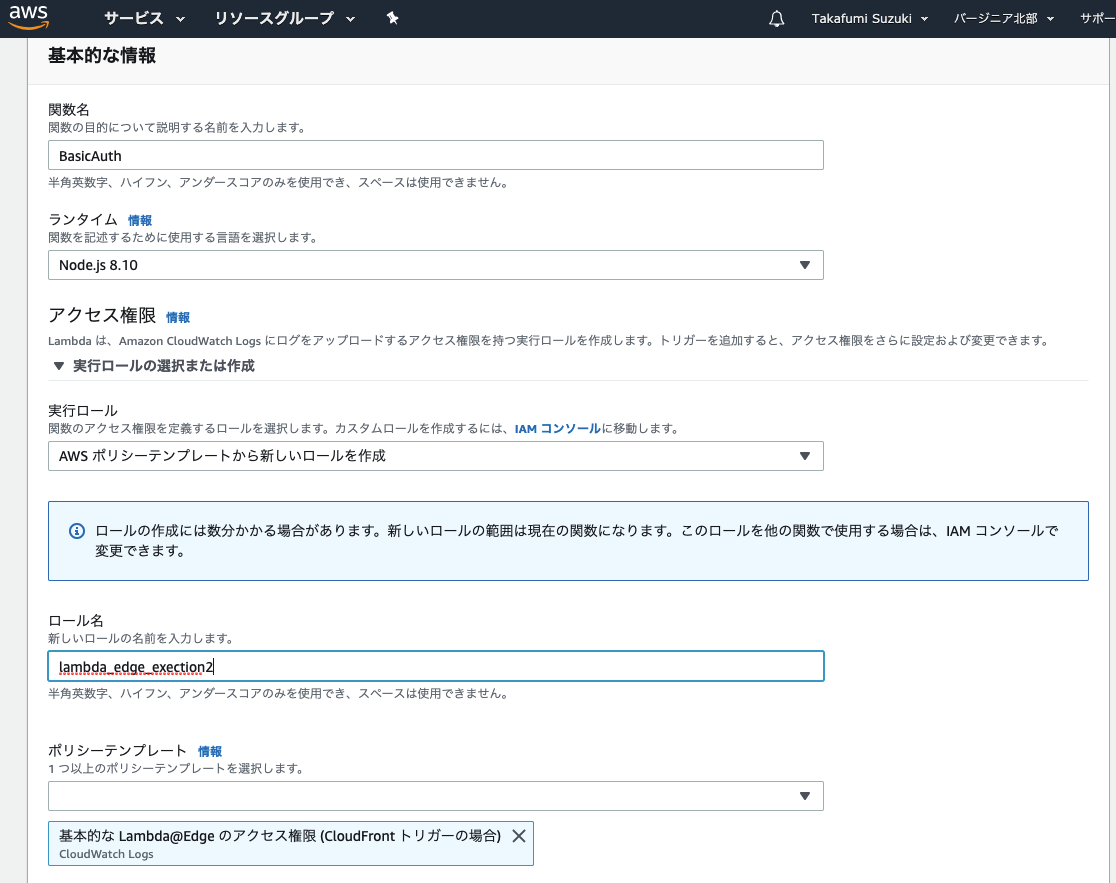 ポリシーテンプレートに「基本的な Lambda@Edgeのアクセス権限(CloudFrontトリガーの場合)」