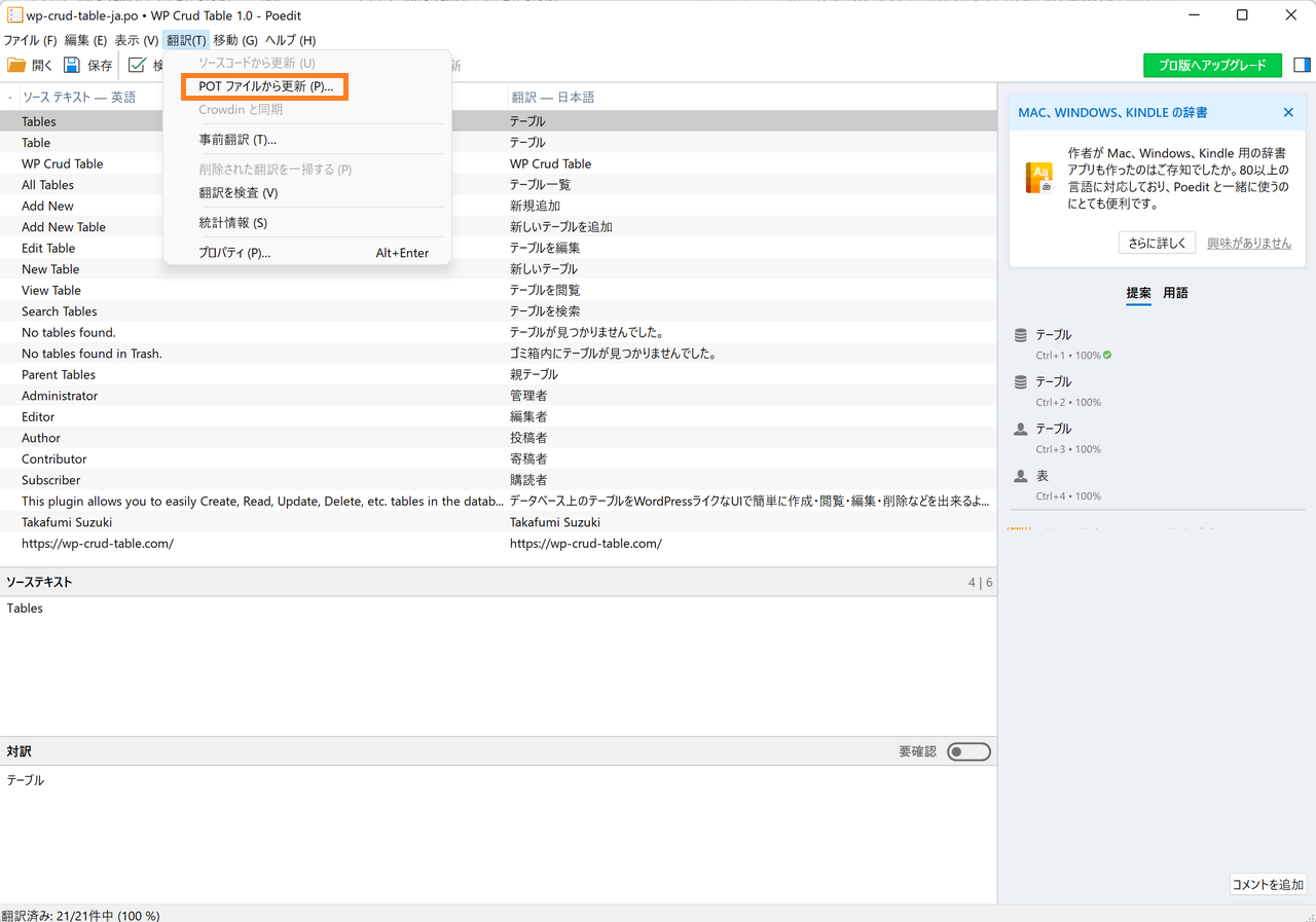 - 翻訳アプリ「poedit」の有料版で生成する方法