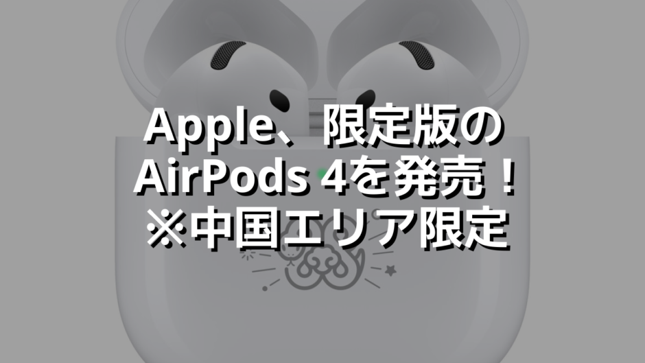 この特別版AirPods 4は本日より注文可能で、配送は1月8日から開始されますが、一人2つまでの購入制限があります。過去には、辰年、丑年、寅年、卯年を祝うためにAirPods Proのカスタマイズが行われてきましたが、今回初めてProではないスタンダードモデルのカスタマイズが行われました。