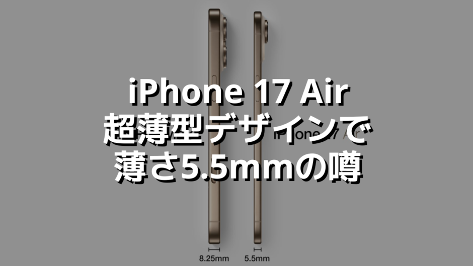 Appleは新しいデザインのiPhone 17 Airを発表する予定で、このモデルは非常に薄いことで注目されています。複数の噂によって具体的な薄さは異なりますが、5.5mmから6.25mmの間になると考えられています。