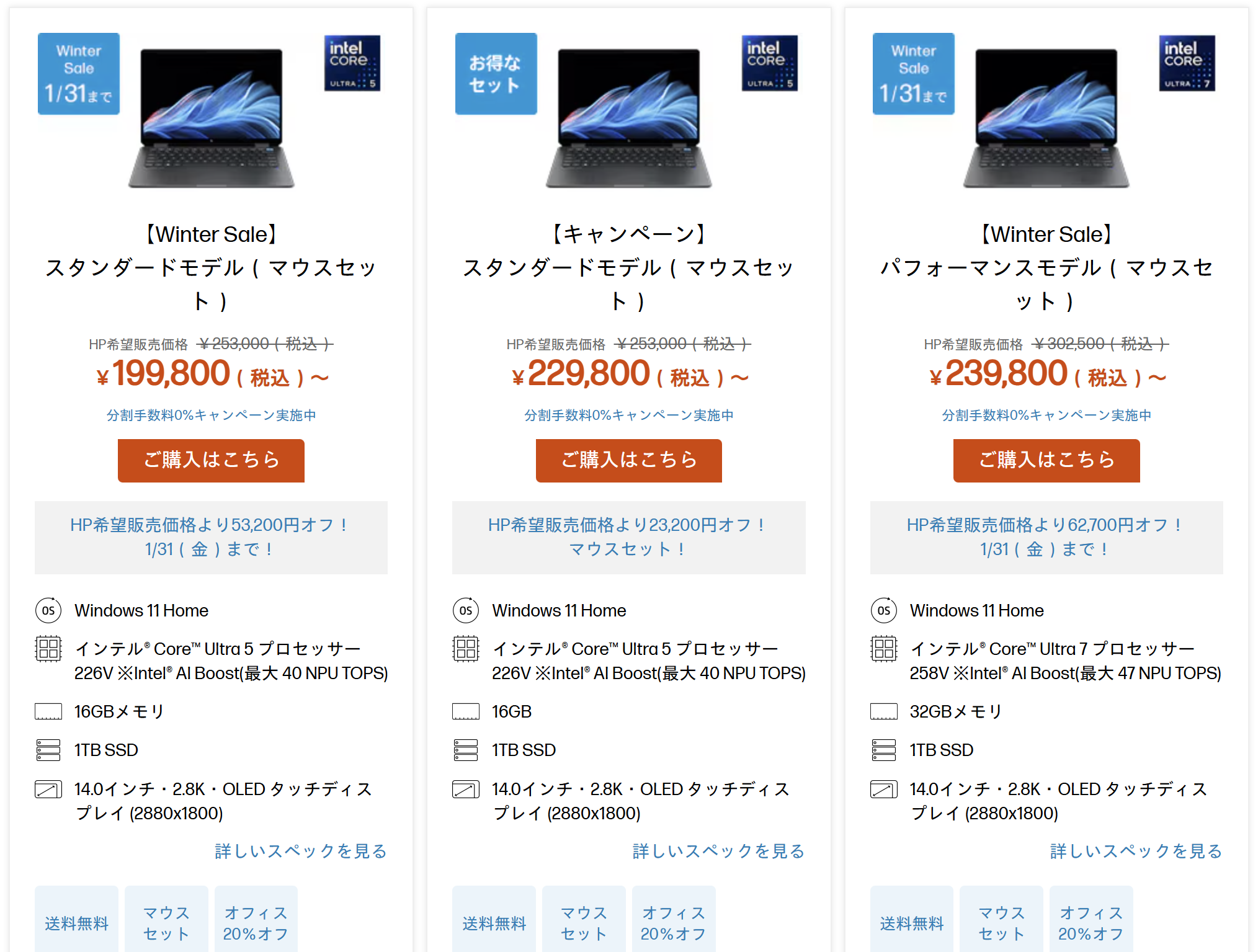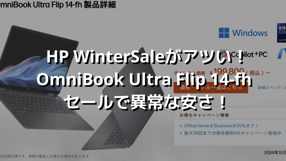 1/31までHPがWinter Saleをやっているのですが、その中で僕も使っている使用満足度95点のHP Spectre x365の後継機であるHP OmniBook Ultra Flip 14-fh がめちゃくちゃお買い得です。