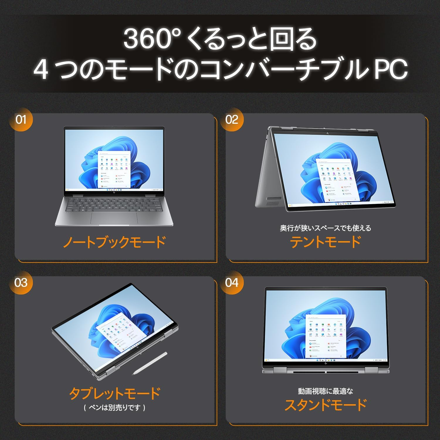 「ノートPCでもあり、タブレットでもある」が最大の特長なのがこのHP Envy x360 14-faです。