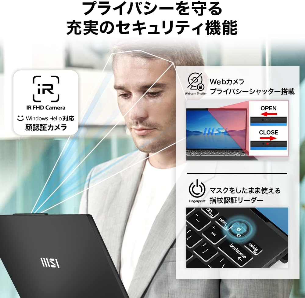 セキュリティ面も抜かりなく、顔認証+指紋認証のダブル対応!場所を問わずスムーズにログインできますし、Webカメラにはプライバシーシャッター付きなので、意図しないカメラ起動が心配な方も安心です。