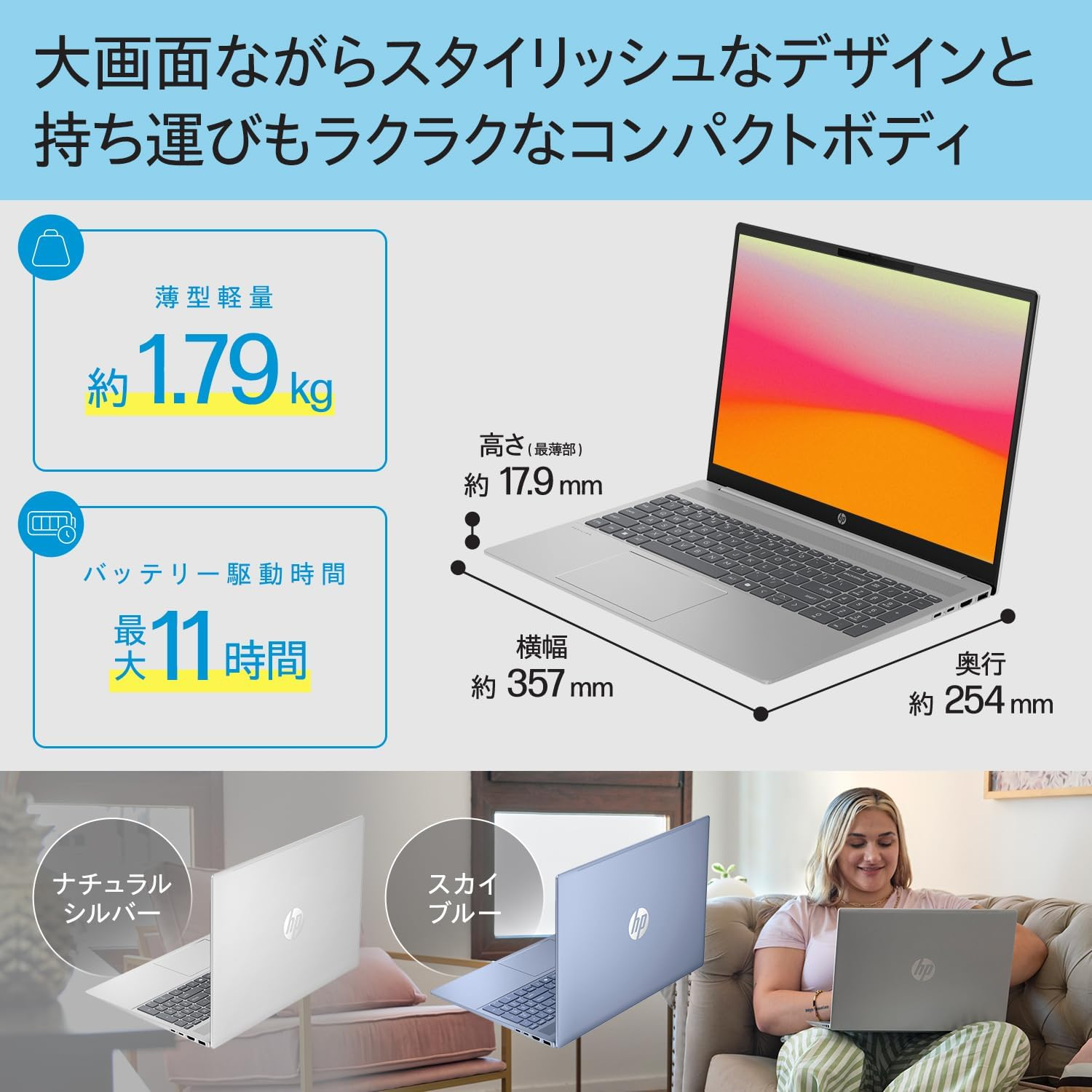 本体サイズは357×254×最厚18.6mmで、重量は約1.79kg。このサイズとしては標準的ですが、毎日持ち歩くには少し重く感じるかもしれません。
