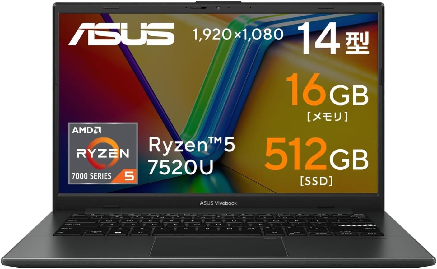 ASUS Vivobook Go 14 E1404FAは、Ryzen 5 7520Uと16GBメモリを搭載し、日常の作業から軽めのクリエイティブワークまで快適にこなせるパフォーマンスが魅力の1台です。標準モデルの8GBメモリから倍増されたAmazon限定仕様なので、ブラウザのタブを複数開いたり、同時に動画編集や画像加工を行うときに効果を発揮します✨
