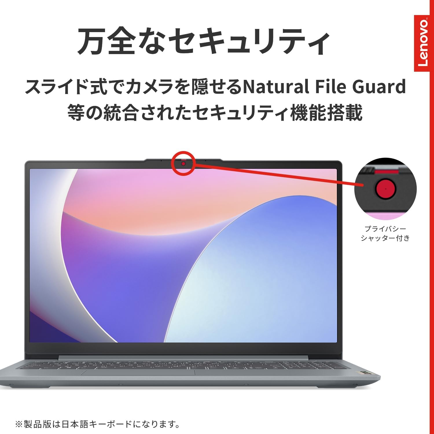 セキュリティ面では、スライド式のプライバシーシャッター付きカメラや指紋認証を搭載。安心してオンライン会議を利用できて、セキュリティを意識する方にも心強い仕様です。✨