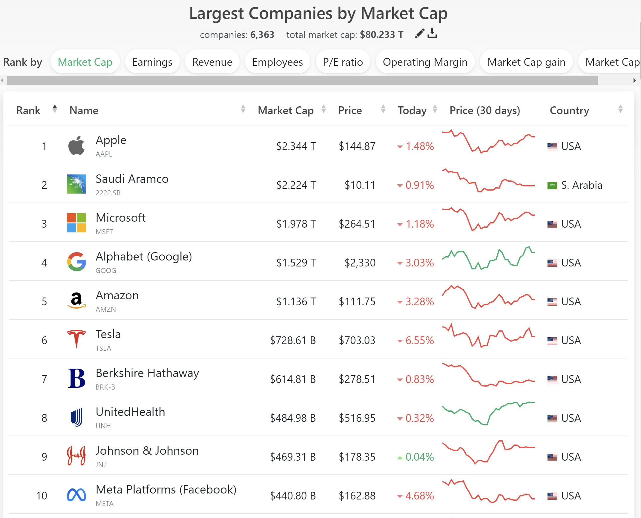 6位のTeslaも電気自動車なのである意味ソフトウェア企業とも言えますね。引用元)https://companiesmarketcap.com/