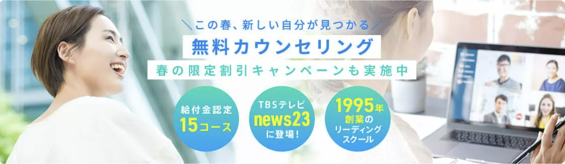 『自分は給付金の対象なの?』『無料体験レッスンを受けてみたい』『おすすめコースはどれ?』等が知りたい方は毎日実施している無料カウンセリングで聞けるので、まずはここで相談してみるとよいでしょう。