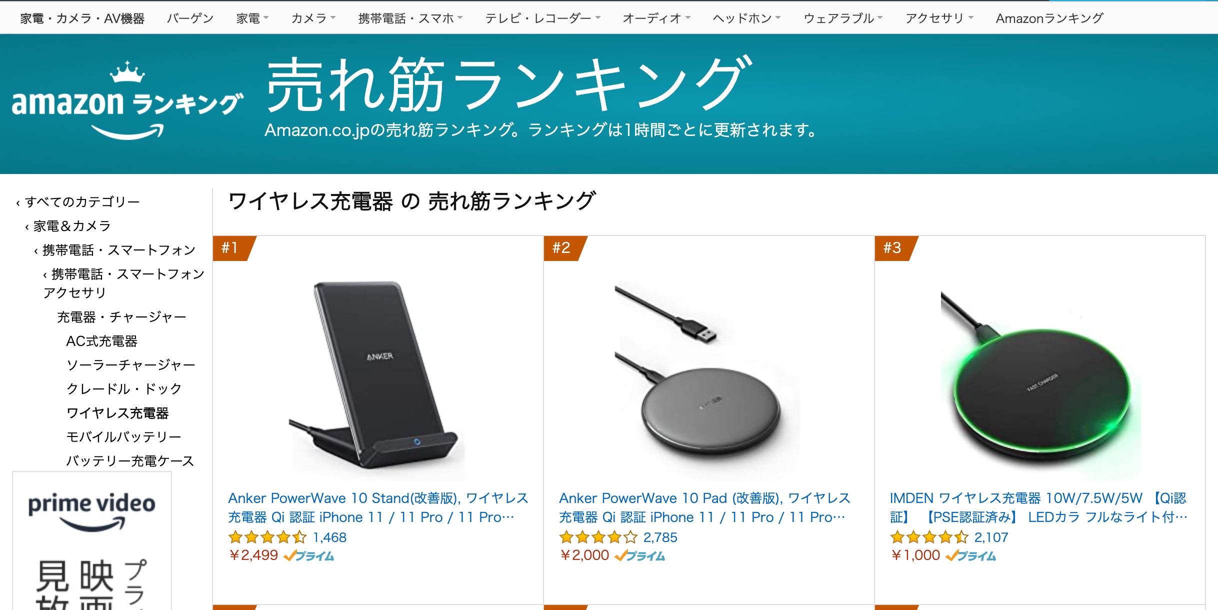 Amazonのワイヤレス充電器 の 売れ筋ランキングで1位