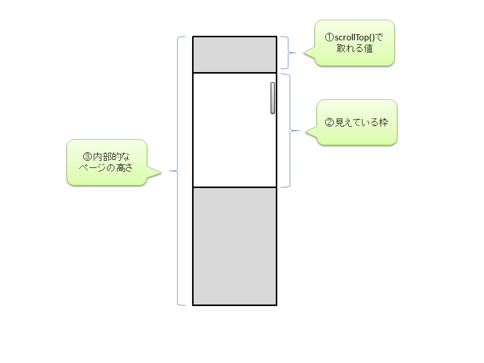 jQueryのメソッドscrollTop()で取得できる高さは見えていない高さの事なので、