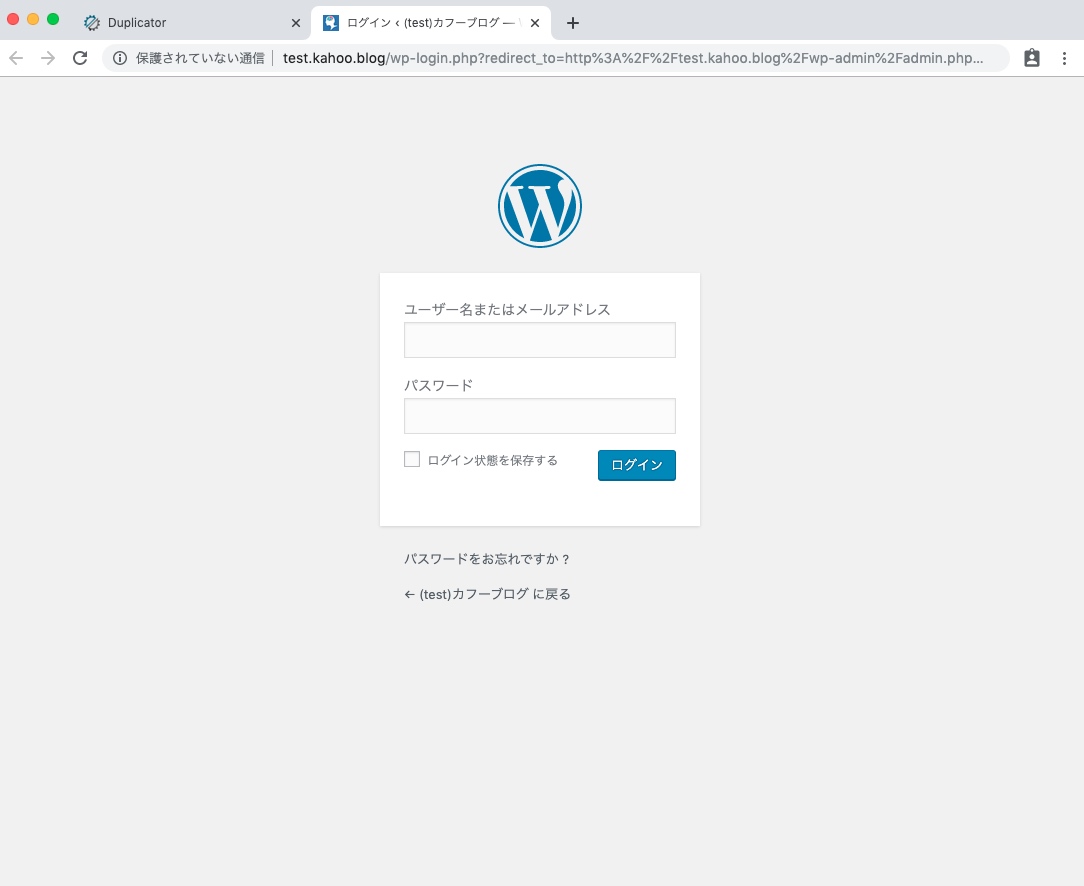 今回は本番サイトと同じサーバーに複製したので現状誰でもアクセス出来てしまいます。